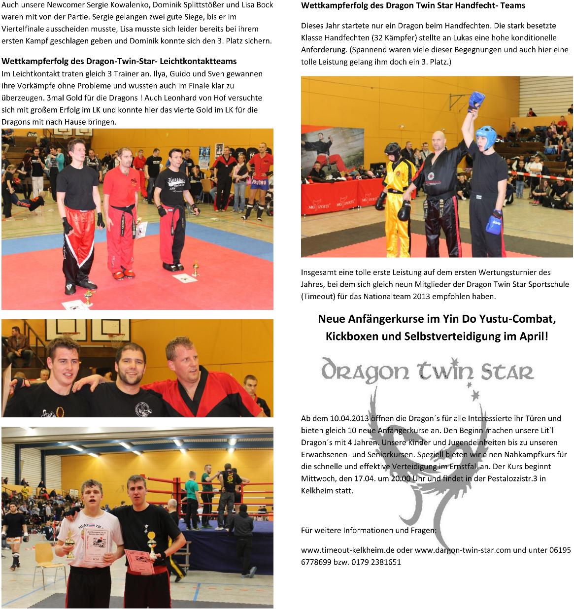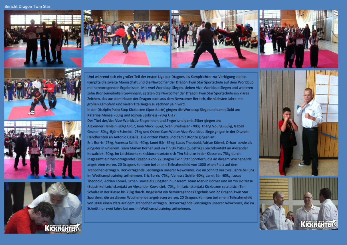 Fehlende Dragon´s :Jan Schladerbeck Silber Worldcup, Day Ungeheuer Vizeweltmeister, Fouzi Zaimi Weltmeister, Dean Vidovic Vizweltmeister, Mohamed Halli Vizeweltmeister, Paul Schneider Bronze WM, Wiiliam Woldcupsieger, Julian Völler Bronze Worldcup, Kevin Sahli Bronze Worldcup,Felicitas Lemberg Bronze Weltmeisterschaft, Anna Maria Somez 2 fache Worldcupsiegerin Vizeweltmeisterin, Jill Junkher 4 Platz WM, Hakim El-Ahaudi Weltmeister K1, Hasan Tutay Bronze